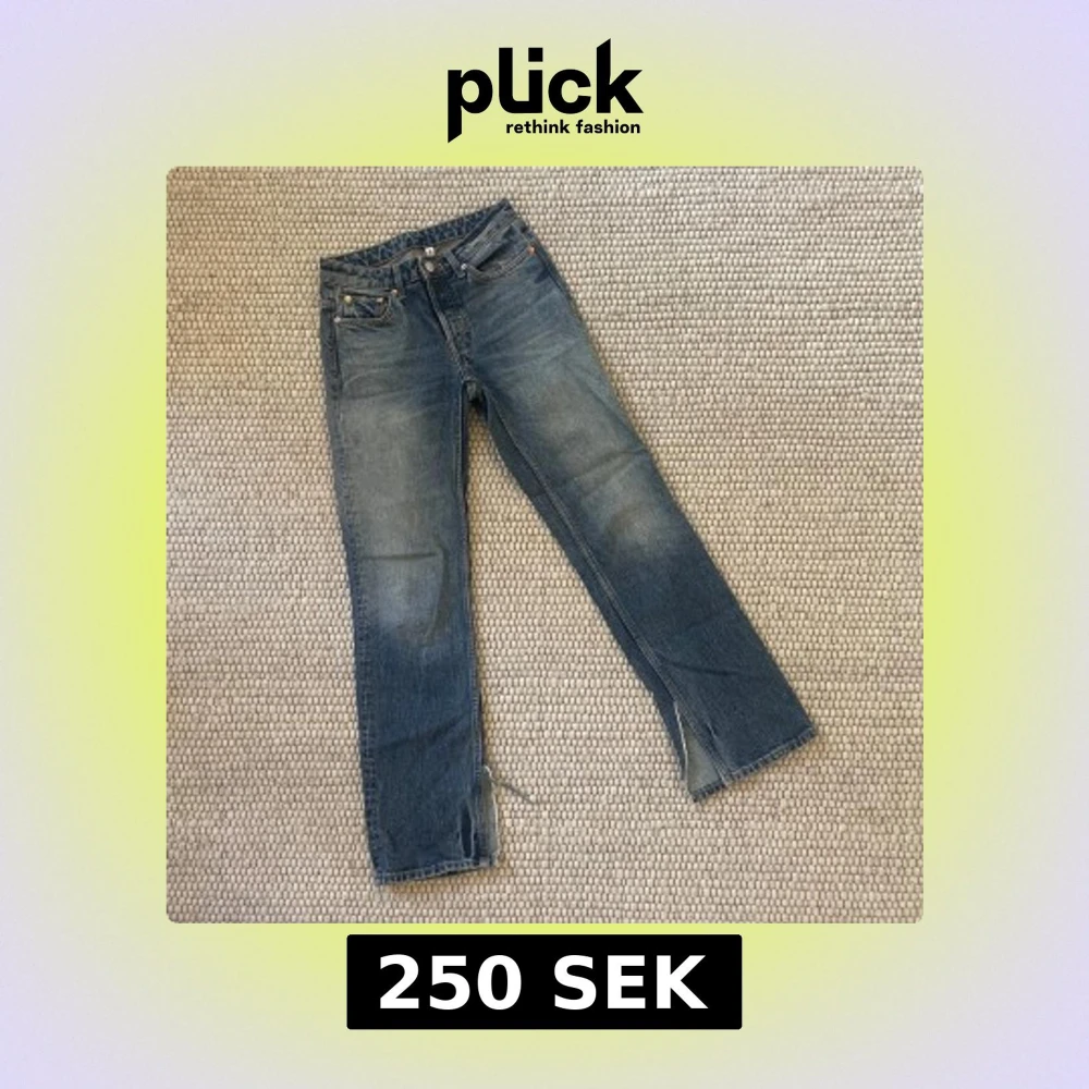 Raka jeans från weekday, modell ”pin”. Snygg blå färg med lite sliten/urtvättad look. Har klipp upp insidan av sömmen på benen så slutet av jeansen blir lite bredare 💕
