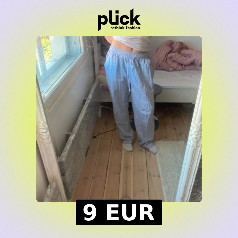 Säljer ett par blåvitrandiga pyjamasbyxor med lös passform och resår i midjan. Perfekta för att chilla hemma eller sova i. Lätta och luftiga med klassiskt randigt mönster.