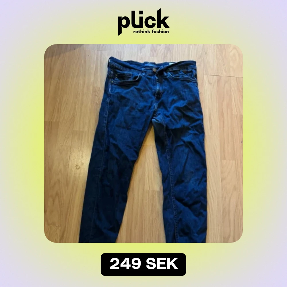 W 30 / L 32 Sitter som slim men har en bra stretch i dem. Ja som har 36/30 får lätt på dem och kan knäppa. Täcken på användning samt skrynkliga eftersom de har inte använts på länge. men överlag så är det i bra skick. Stryker givetvis dem vid affär.