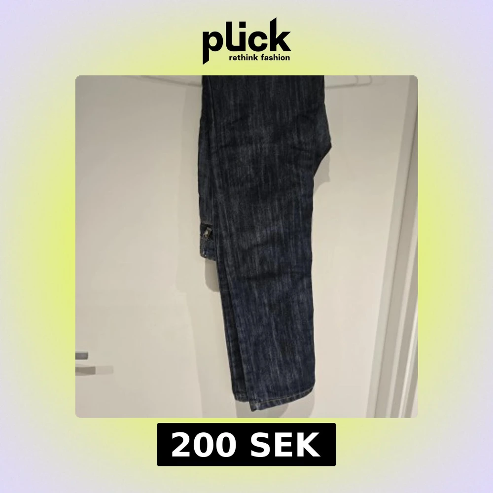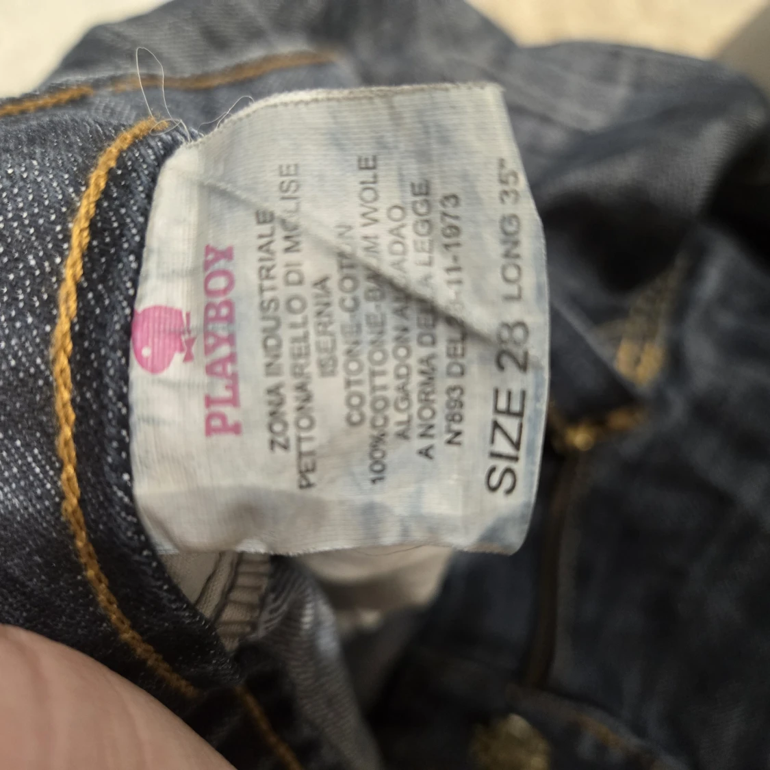 Mörkblå jeans från Playboy med raka ben och snygga kontrastsömmar. Bakfickorna är klassiska och framtill finns en unik knapp med Playboy-loggan dekorerad med strass. Jeansen är tillverkade i 100% bomull och har en normal passform. Massa fina detaljer på dessa jeans!