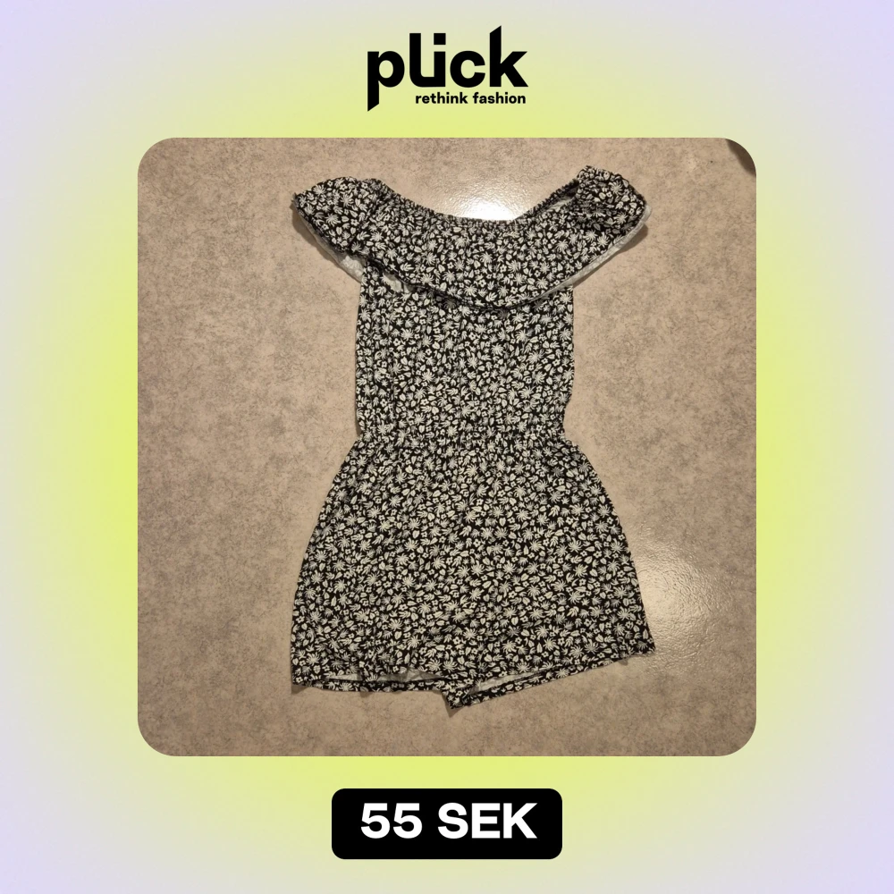 Blommig byxdress med korta ben, går att ha off-shoulder, använd men i bra skick