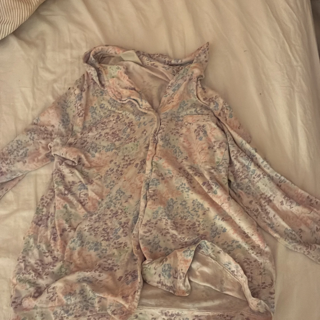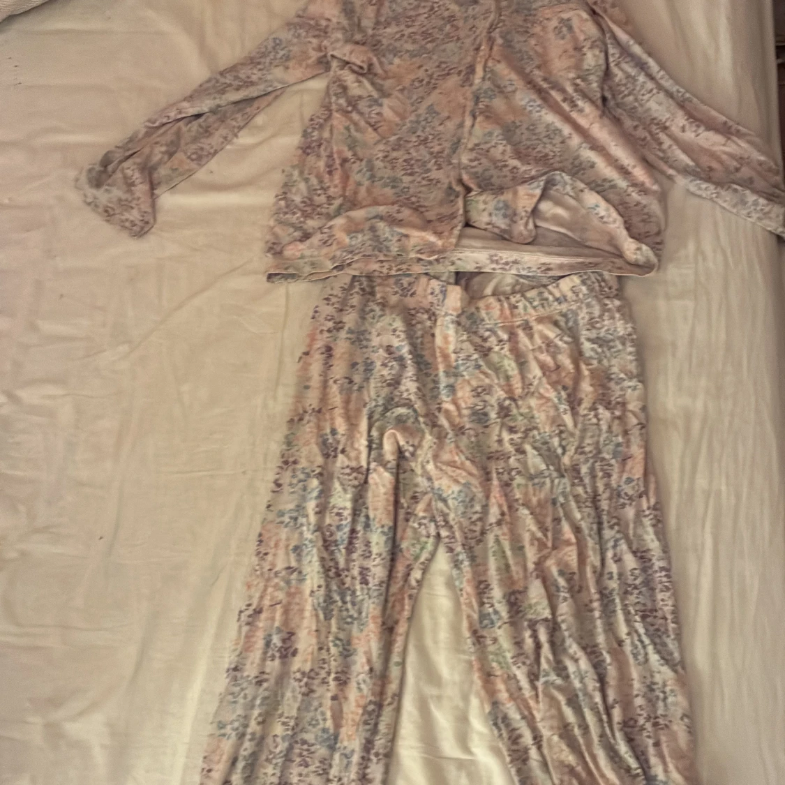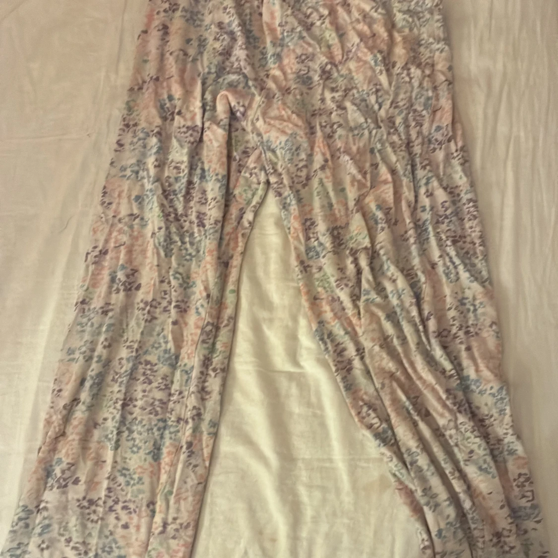 Supersköna pyjamasbyxor från Kappahl i storlek 134/140. Byxorna har ett blommigt mönster i pastelliga färger som lila, rosa och blått. De är vida och har resår i midjan för extra komfort. Perfekta för mysiga hemmakvällar!