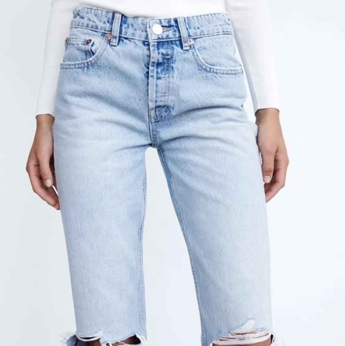 HELT OANVÄNDA. Populära slutsålda ZARA jeansen i ljusblå med hål på knäna. Säljer pga att de var för små. Ordinarie pris 359kr😇