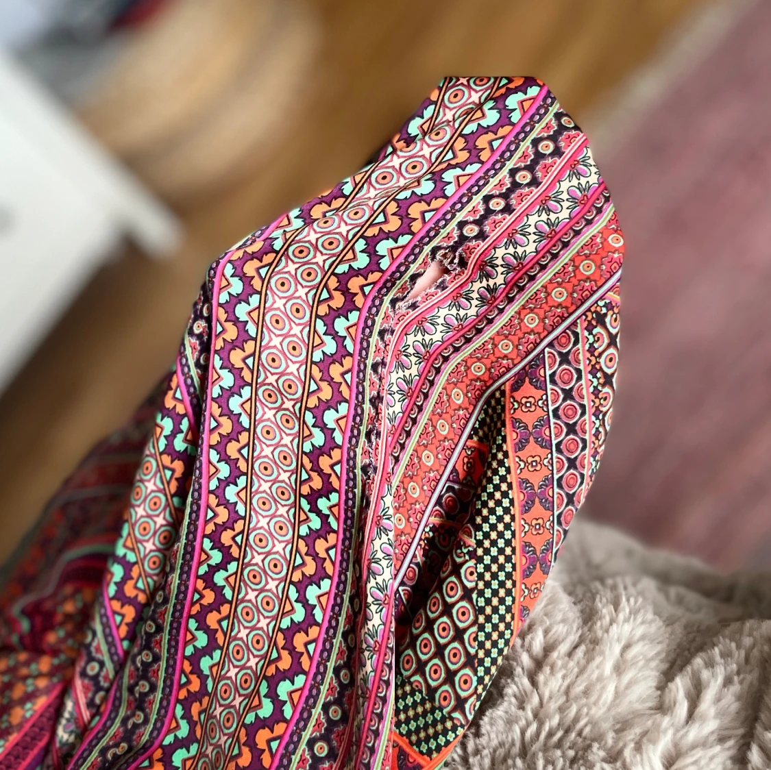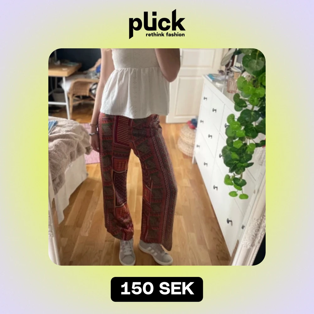 Fina boho byxor från KappAhl i ett material åt det mjukare hållet 🧡 Det finns ett litet hål strax över knät på högerbenet men tror själv att det lätt kan sys ☺️