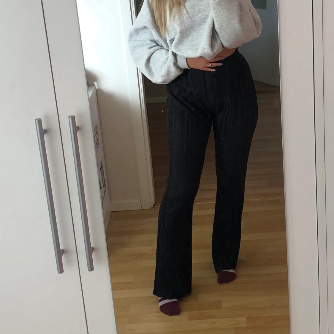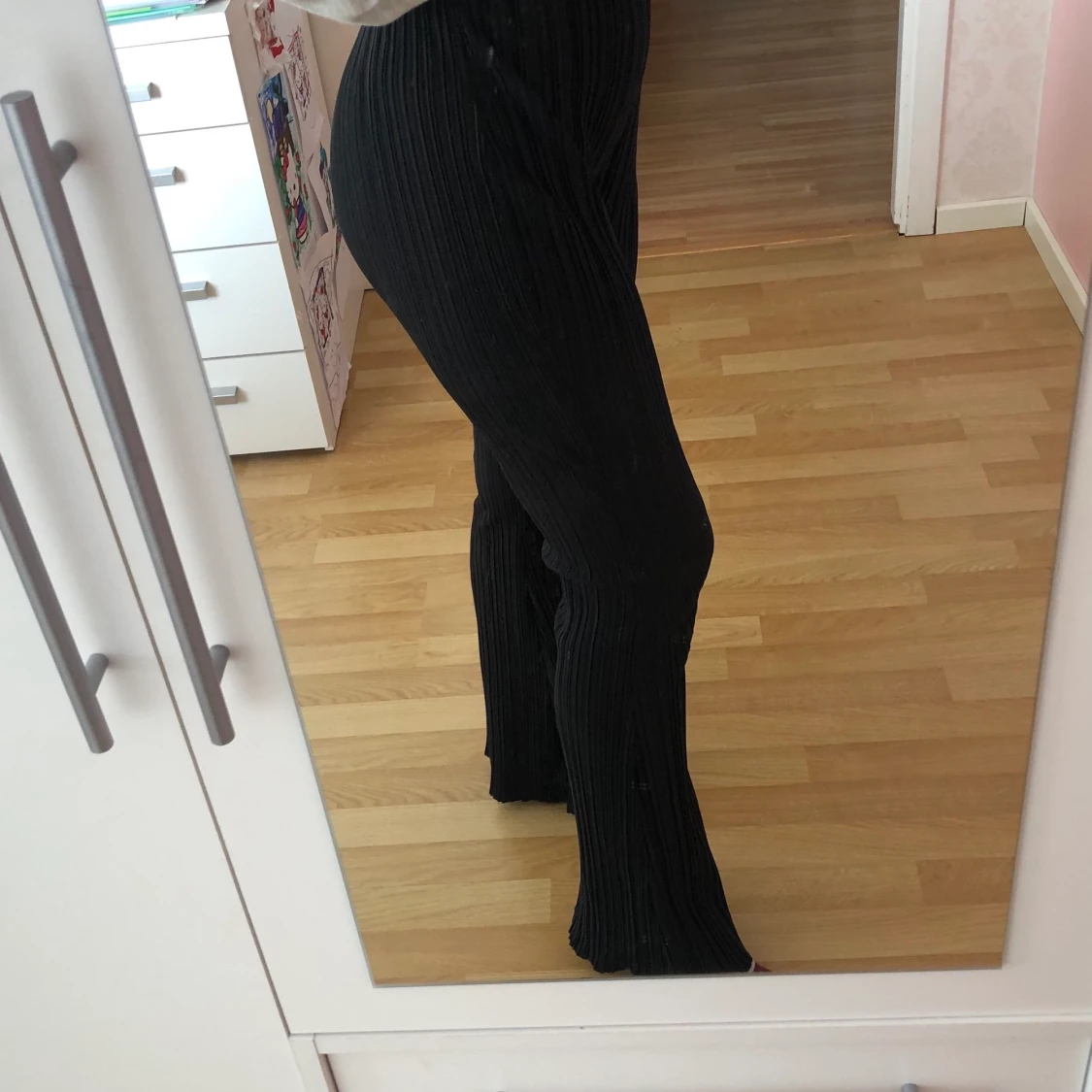 Jättesköna utsvängda byxor i ett slags ribbat material, perfekta till sommaren🙌🏻 Stretchiga så de passar M också! Endast testade💖