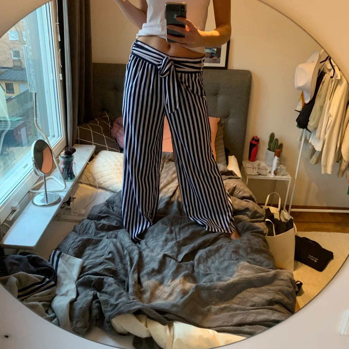 Randiga byxor med prislappen kvar, aldrig använda. Hade dom lågmidjat så då var dom många men annars är som lite korta men är 179 cm. Köparen står för frakten.