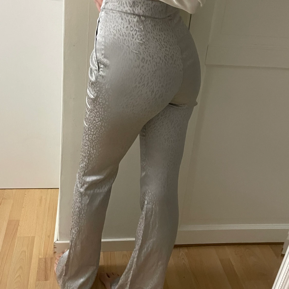 Flared byxor i unikt print, aldrig använda. Storlek S.