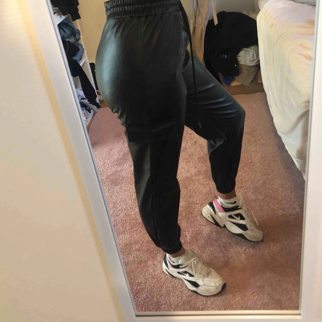 Ett par fräcka skinnbyxor, säljes pga ingen användning! Passar även de med S, jag har S men detta är M de är väldigt töjbara! sitter bra, har snörning!