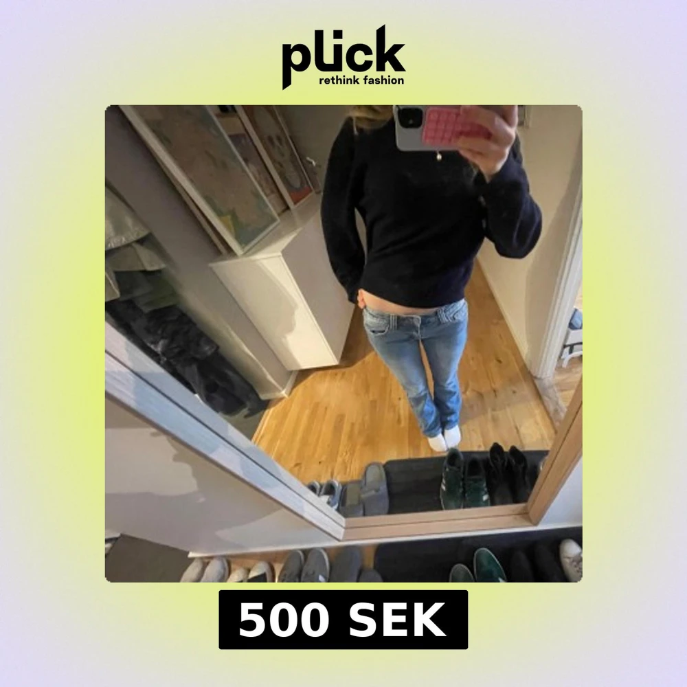 Säljer ett par klassiska blå bootcut jeans med normal passform och låg midja. Jeansen har en enkel design utan synliga detaljer och är perfekta för en avslappnad stil. Jag är 160 för referens! Midjemått är 37cm