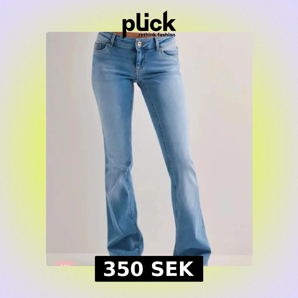 Snygga ljusblå jeans med bootcut passform och låg midja. Klassisk femficksmodell med dragkedja och knapp framtill. Perfekta för en avslappnad och trendig look. Nypris 600kr