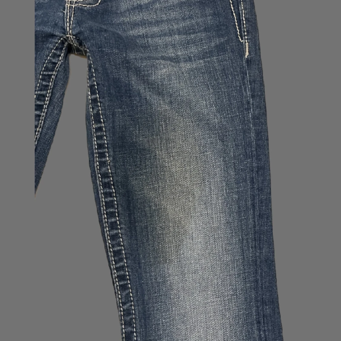 Otroligt fina lågmidjade bootcut miss me jeans i storlek 26!😍 Finns en fläck på låret, se sista bilden! midjemåttet: 36cm innerbenslängd 70cm PS; KOLLA IGENOM MITT KONTO NI KOMMER HITTA MÅNGA Y2K OCH VINTAGE PLAGG!