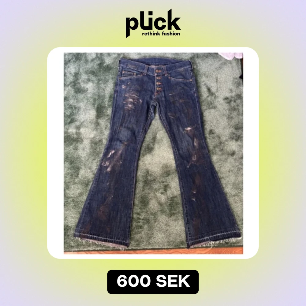 Ett par jeans från Tornado mart med mycket detaljer. Såsom färgfläckar och en etikett i päls. Säljer för dom inte passa. Sitter 30/30
