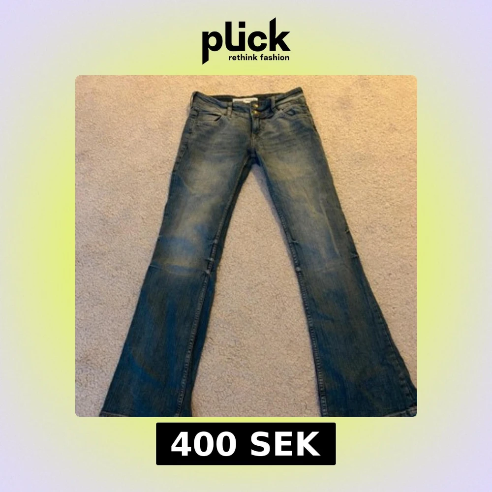 Snygga blå jeans från Bershka i bootcut-modell med klassisk femficksdesign och dubbla knappar framtill. Jeansen har en lätt tvättad look. Låga i midjan.