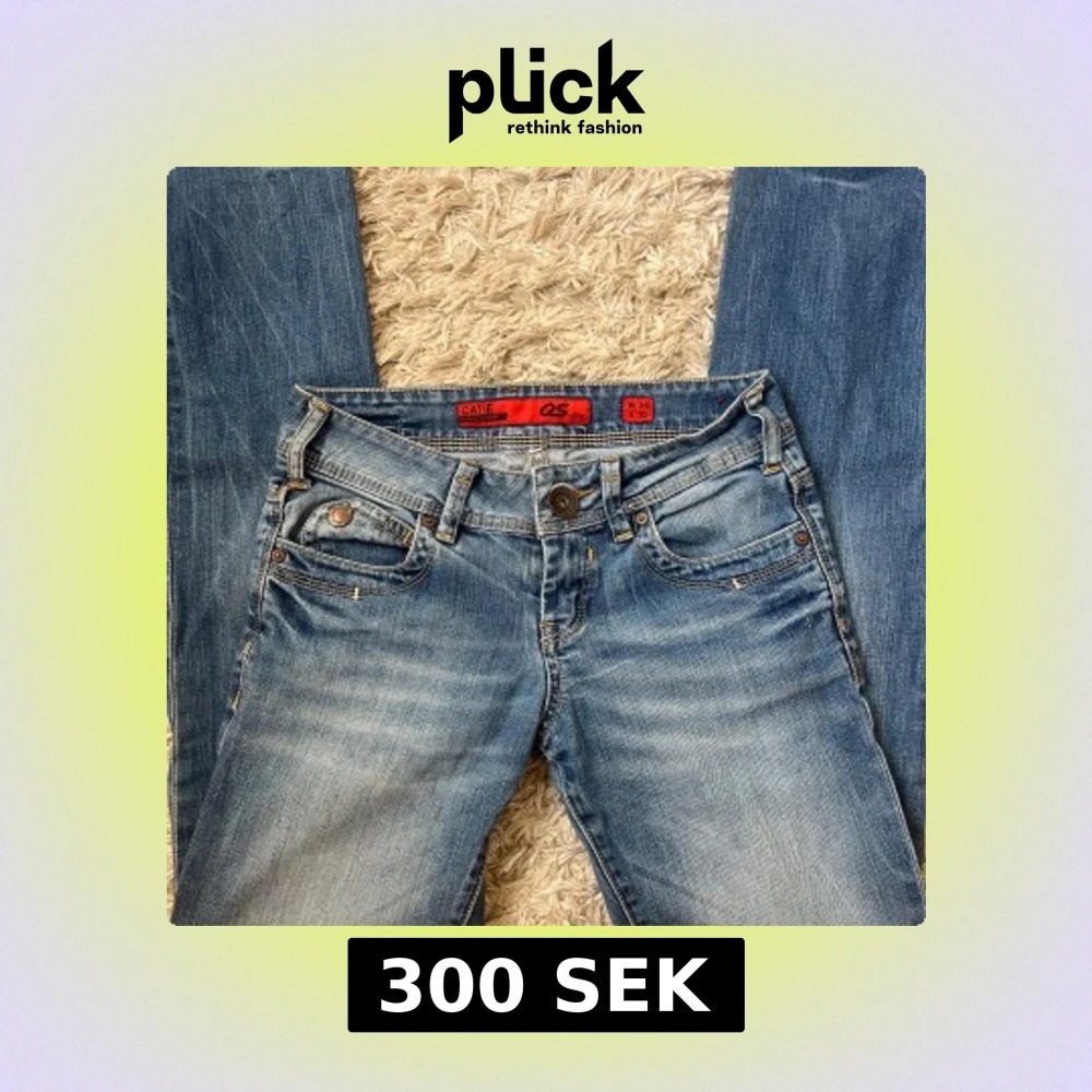 Snygga blå jeans från QS by S.Oliver med en klassisk femficksdesign och subtila slitningar. De har en låg midja och en bootcut-stil som ger en avslappnad look.❤️❤️