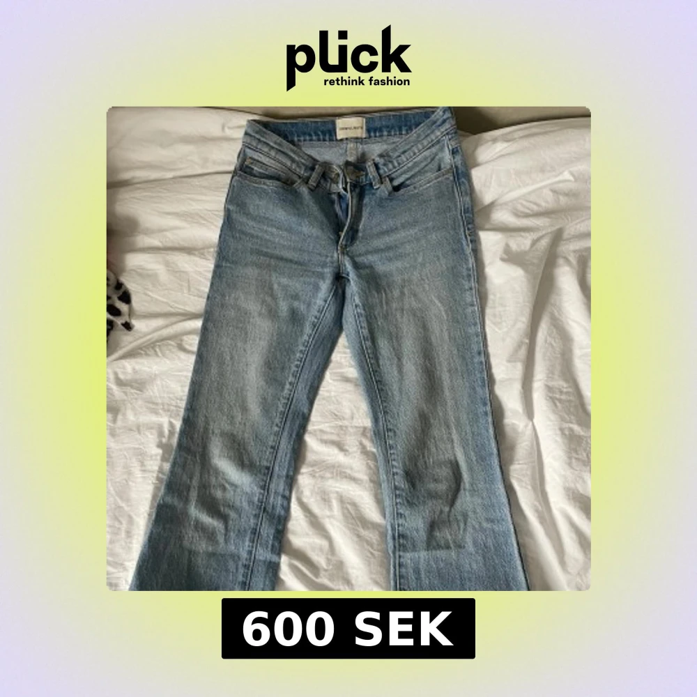 Snygga blå jeans från Abrand Jeans med klassisk femficksdesign och dragkedja. De har en low boot och är perfekta men har växt ur dem. Jeansen har en ljus tvätt som ger en vintagekänsla.