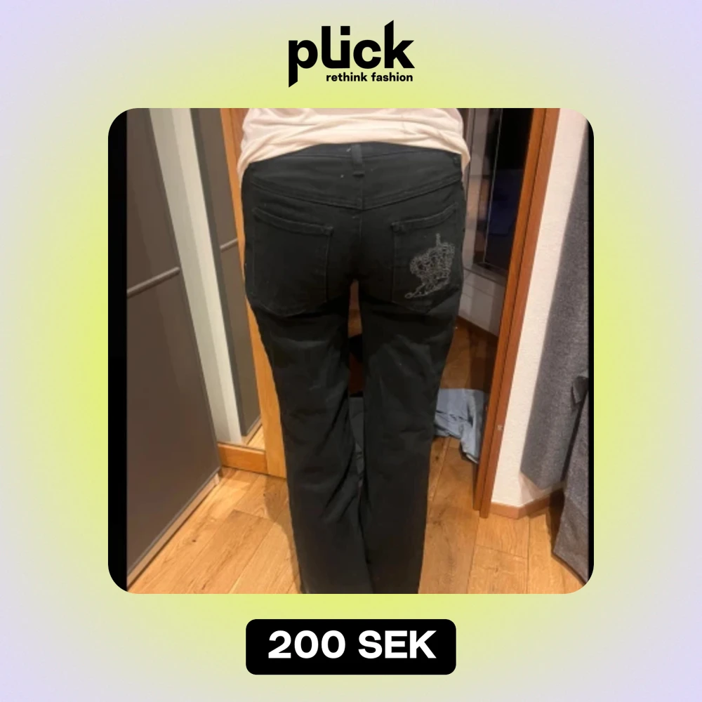 Säljer dom här svarta lågmidjade bootcut jeansen!💕 köpta på Sellpy men tyvärr är dom för små på mig (inte bild på mig)💕 passar 36or 38 or 💕