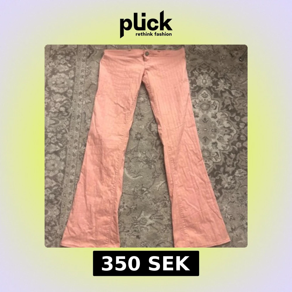 Snygga ljusrosa bootcut-byxor från Calvin Klein. Jag själv har sytt dem lågmidjat genom att sänka byxornas knäppning. Det är alltså inga stygn mellan benen utan runt midjan istället.