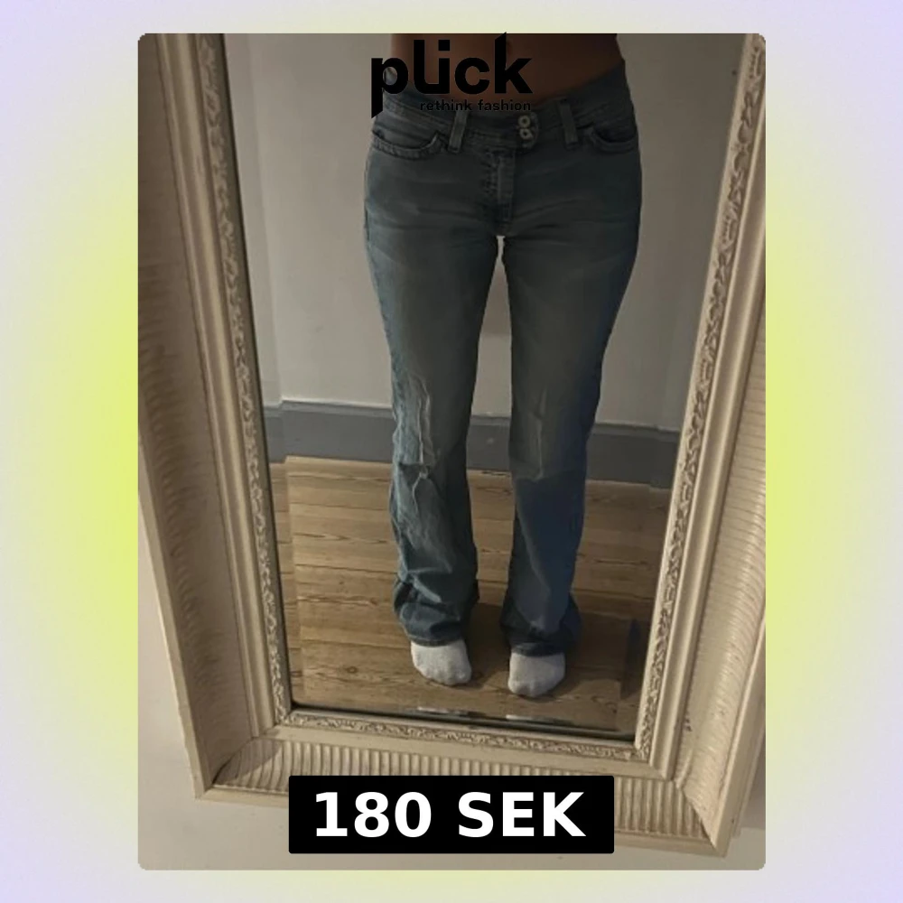 Säljer ett par ljusblå jeans från Crocker med bootcut passform och låg midja. Jeansen har klassiska fem fickor, dubbla knappar i midjan och snygga kontrastsömmar på bakfickorna. Sytt på en del där nere då jag vill ha dem längre, tar du bort dom är Innerbenslängd- 70 och med 80, storlek 36/S!