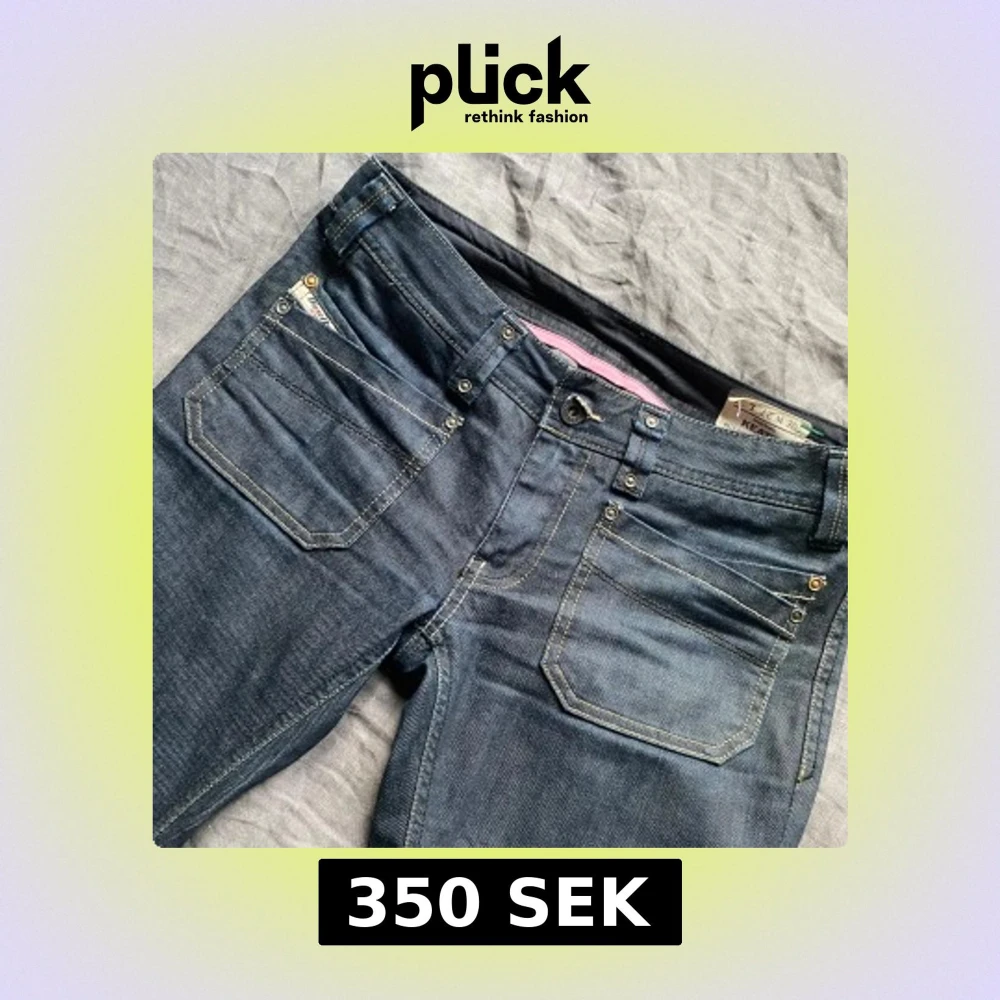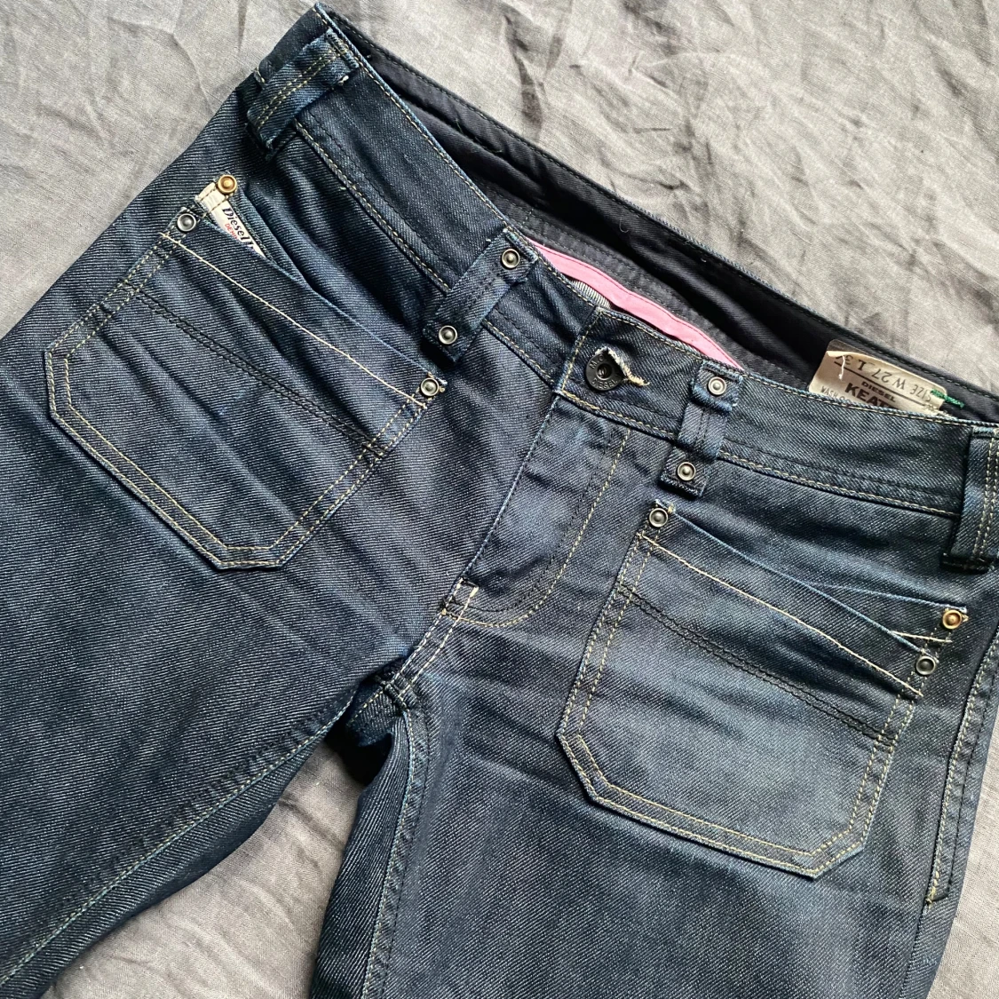 Säljer dessa supersnygga as lågmidjade jeans från diesel! De är bootcut med unika fickor både fram och bak. Jeansen är i storlek W27. De har även söta rosa sömmar på insidan. Bara att fråga om fler bilder eller så om du är intresserad!
