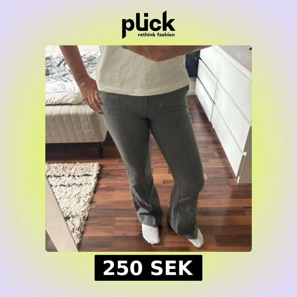 Snygga grå kostymbyxor med bootcut-modell och markerade pressveck längs benen, knappt använda💗pris går att diskutera