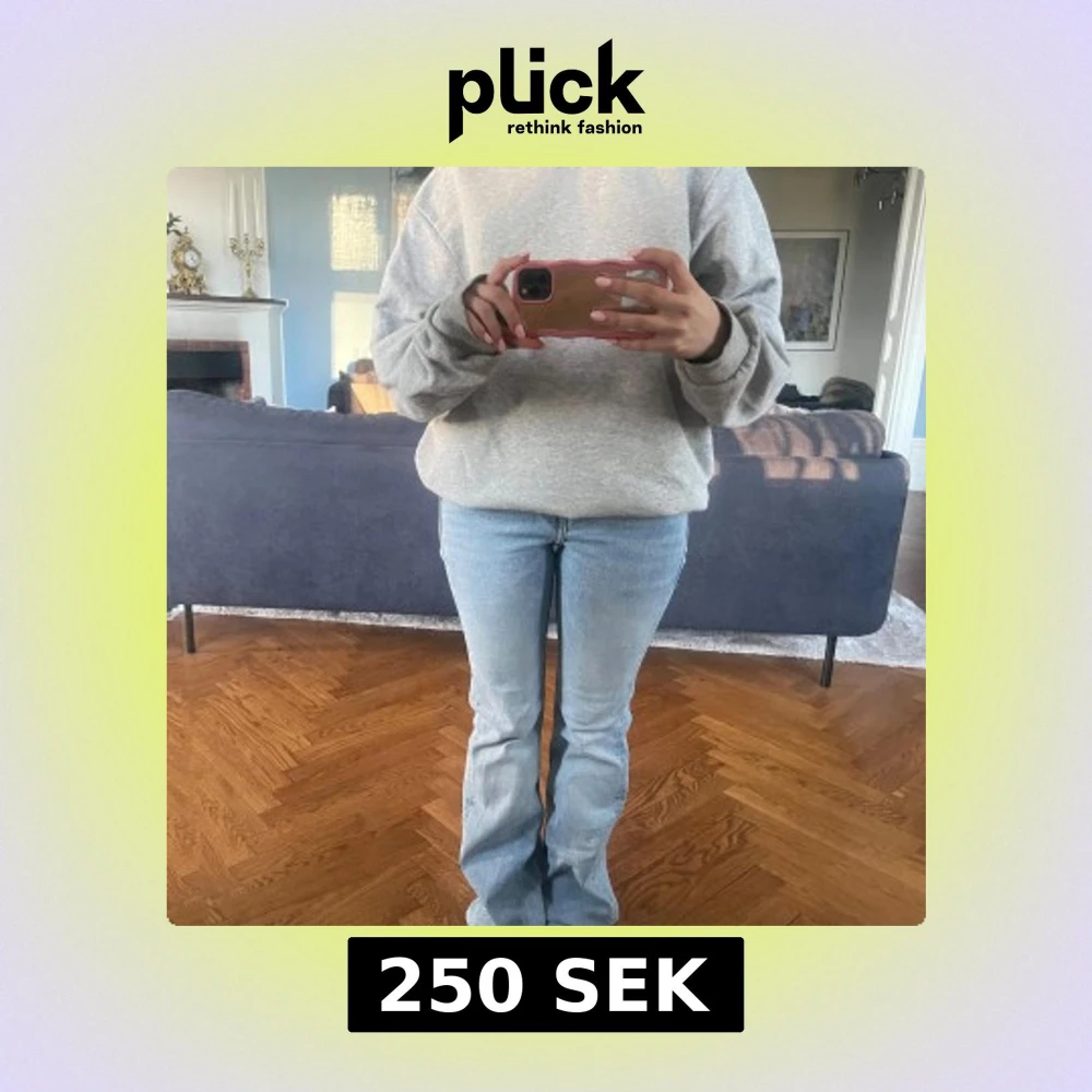 Säljer ett par ljusblå lågmidjade jeans med bootcut passform, aldrig använda och passar bra till allt