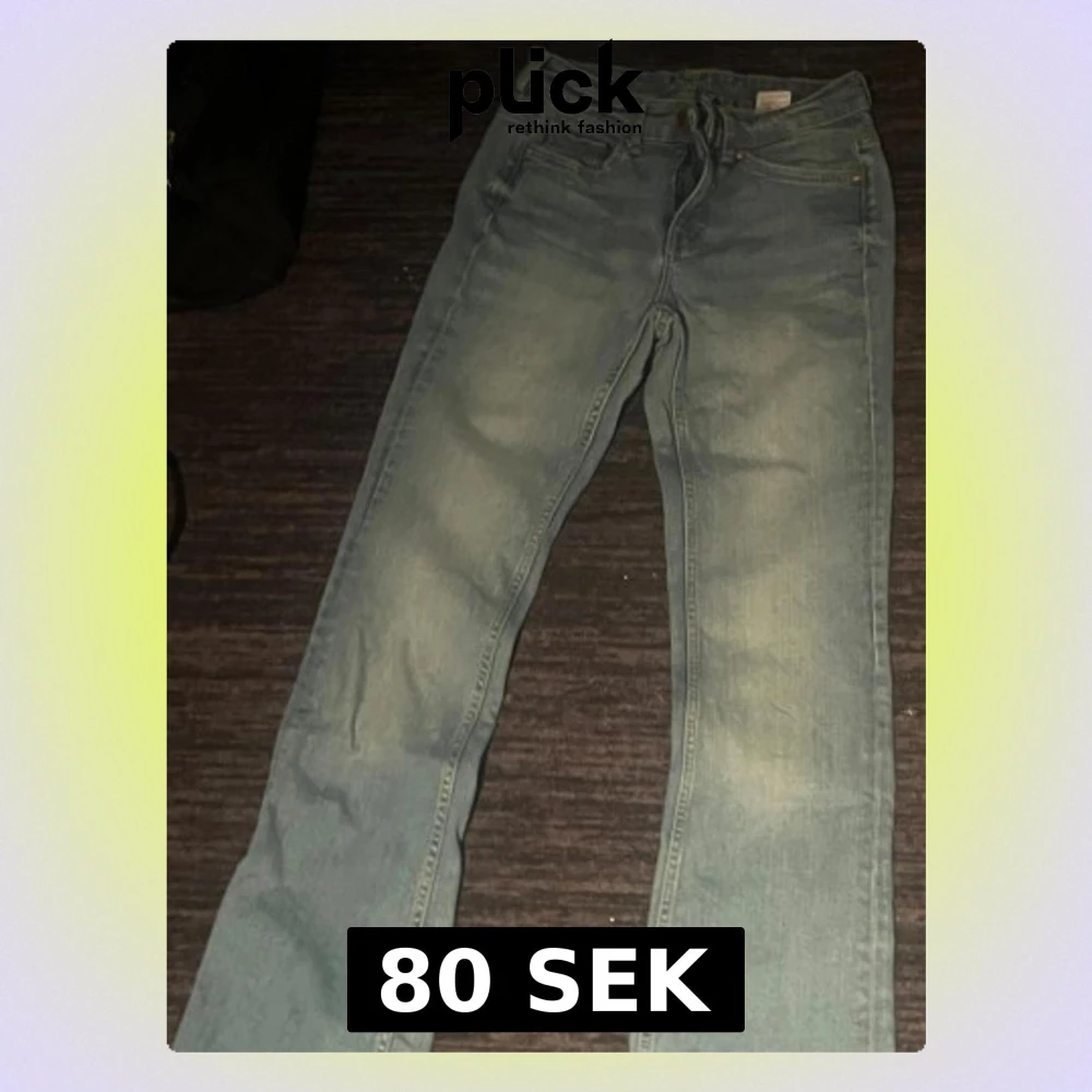 Snygga blå jeans med klassisk tvätt och bootcut ben. Modellen har fem fickor, normal passform och midja. Jeansen är tillverkade i slitstarkt denim och har en tidlös look som funkar till många stilar. Lite för korta för mig som är 171. Inga defekter eller slitage men använda. Kolla min profil för fler jeans för samma pris. Vet ej vart dom är ifrån men köpta i Norge