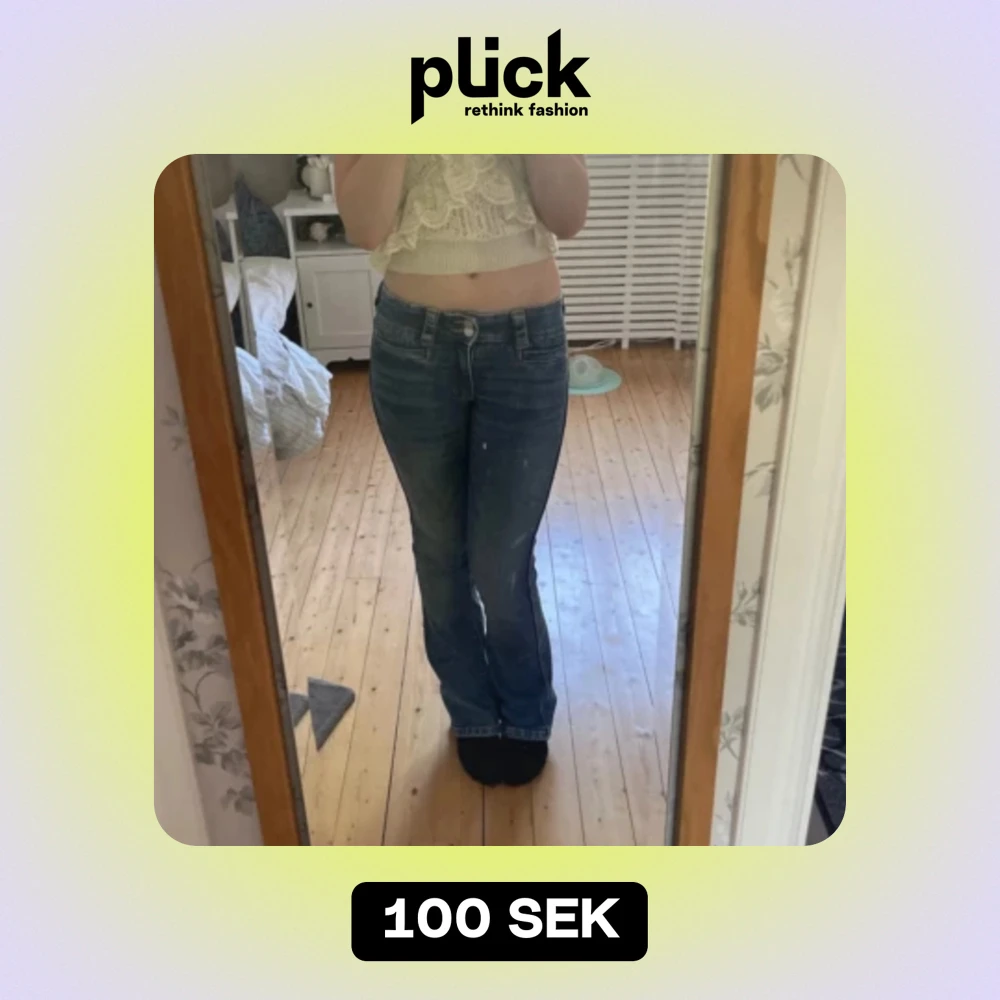 snygga bootcut jeans men fickor. Knappt använda så nyskick 🩷 stl 164, är 160 som referens!