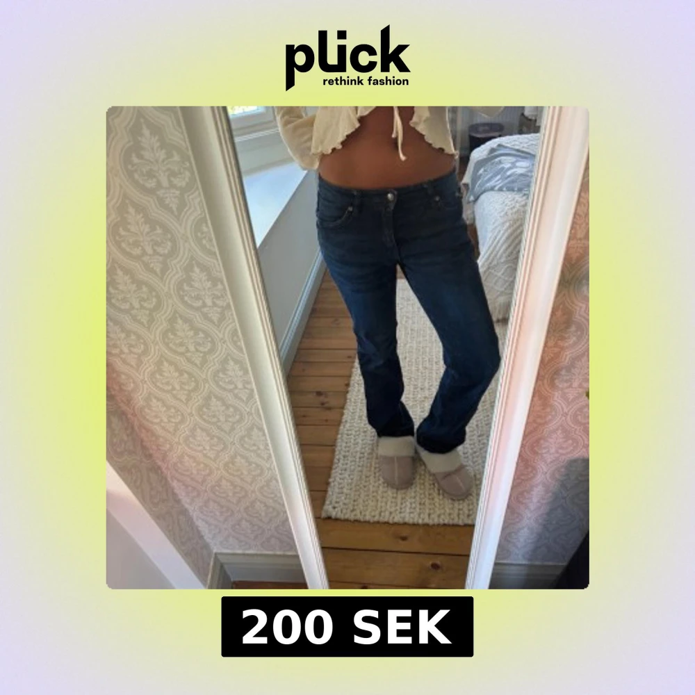 Säljer ett par mörkblå bootcut jeans. Super snygga!