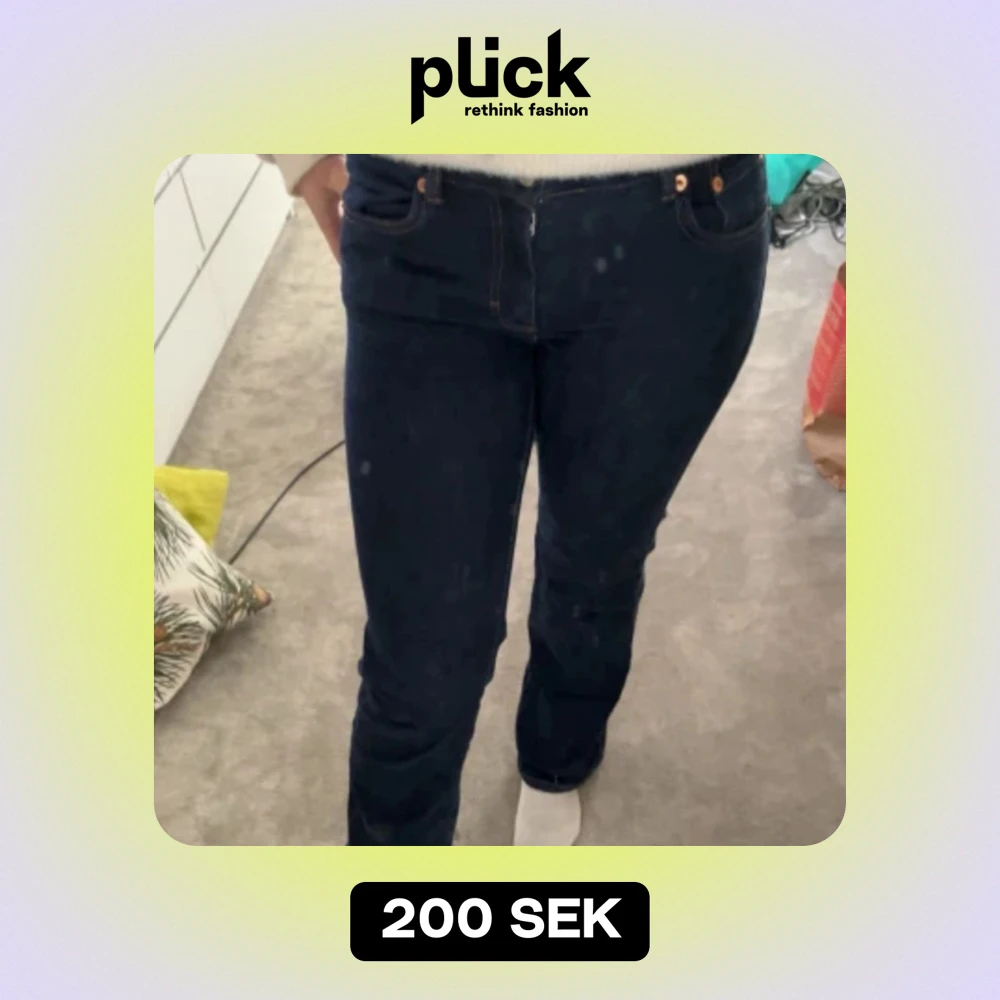 Mörkblå bootcut jeans men fickor bak, toppen skick. Pris kan diskuteras