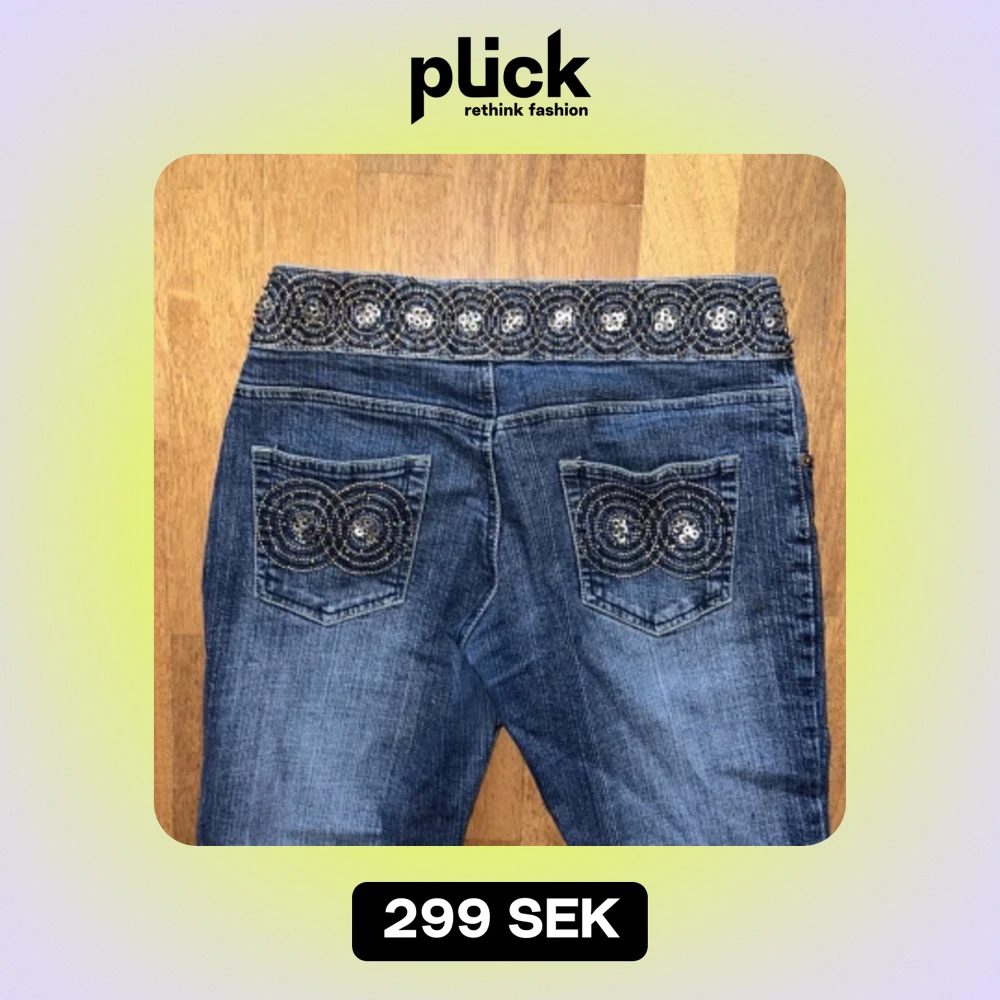 Säljer dessa assnygga bootcut jeans me coola mönster då dom har blivit för korta på mig som är 167❤️toppen skick