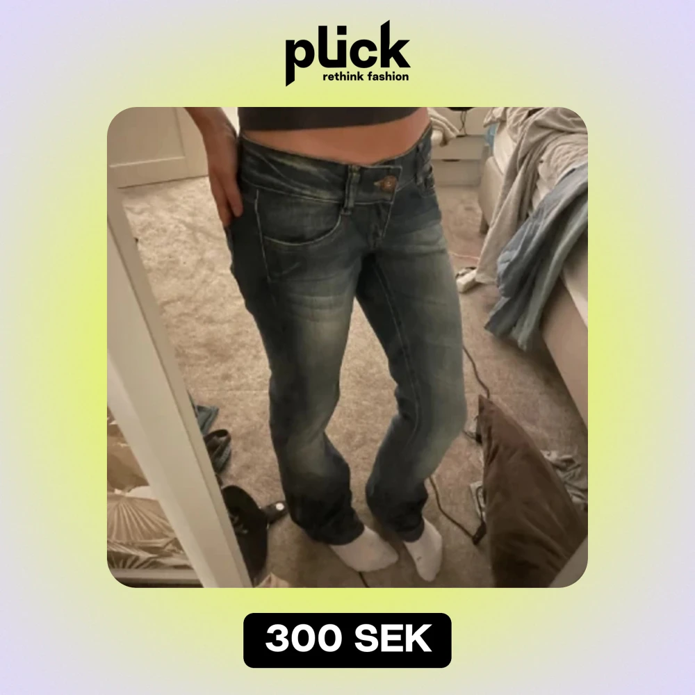 Säljer dessa bootcut jeans då jag tröttnat på dom💕 De har ett hål på ena benet men det ser ut som att de är köpta så!!