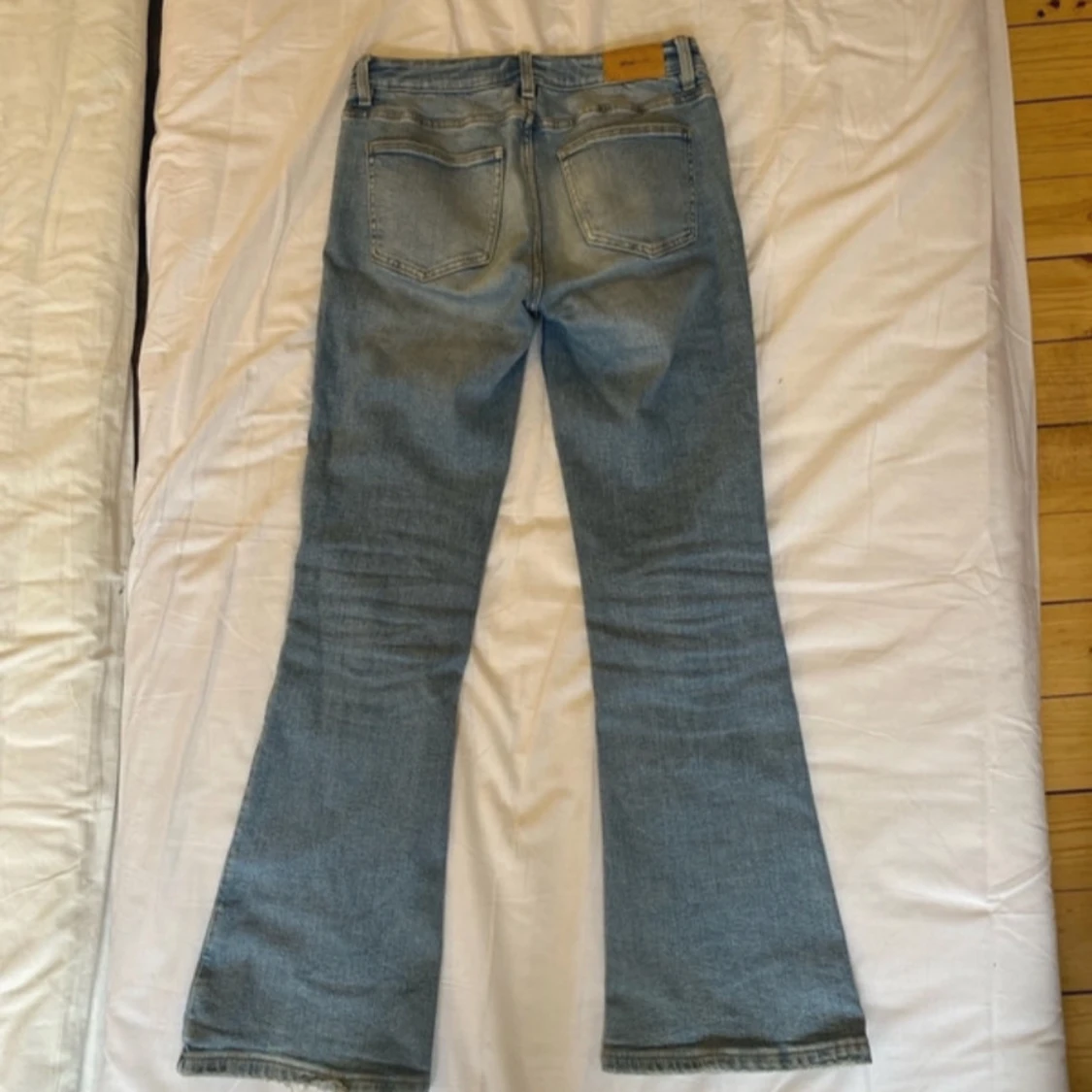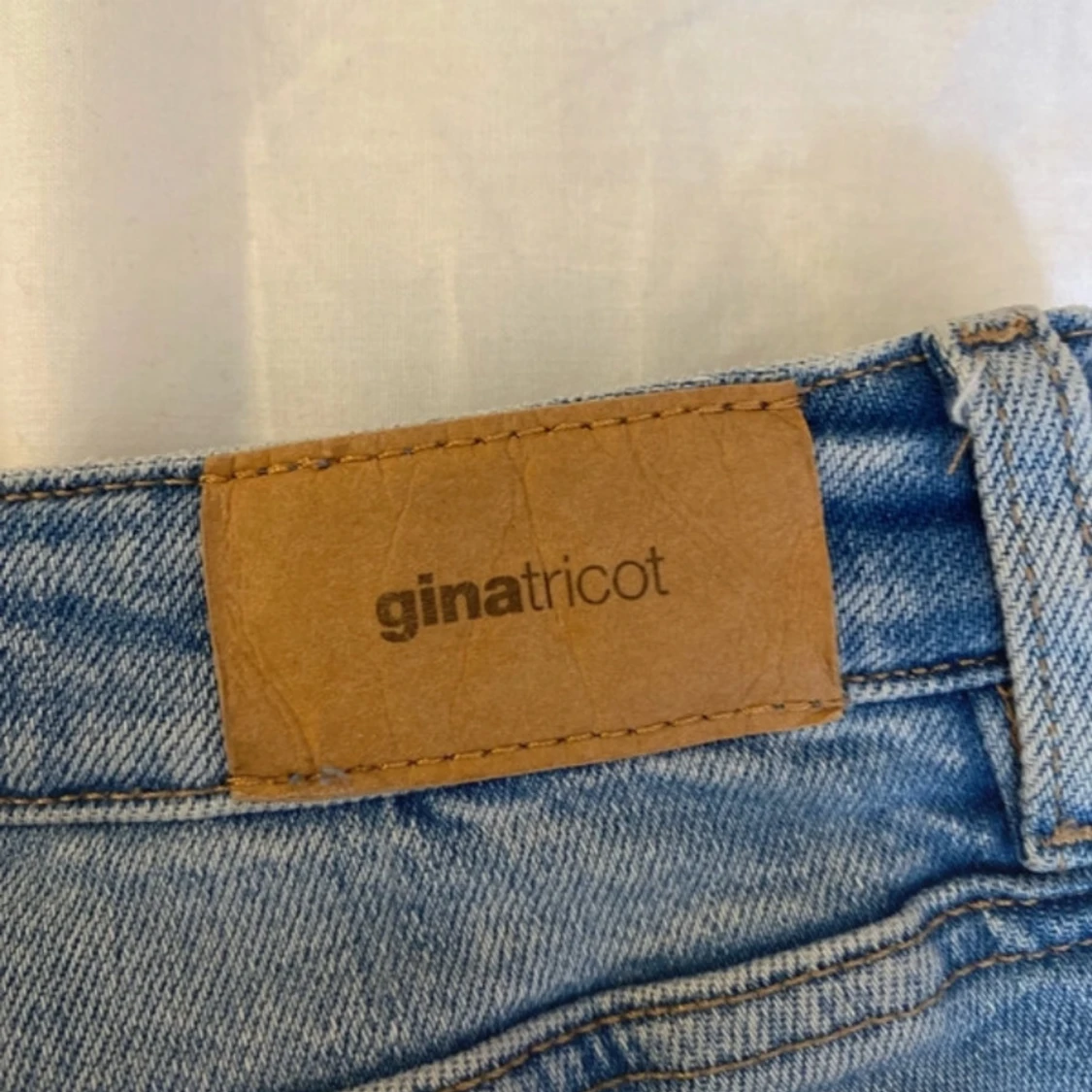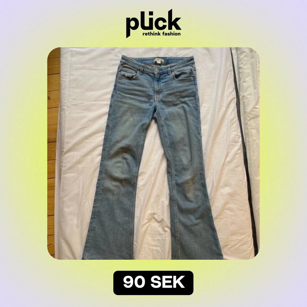 Ett par jätte snygga Bootcut jeans från Gina tricot! Jag sydde dem Bootcut men de blev inte bra så därför är det ett litet jack som ni ser på femte bilden. Använda ganska mycket. Storlek 152 men passar för de som har xs-s. Lite slitna när nere
