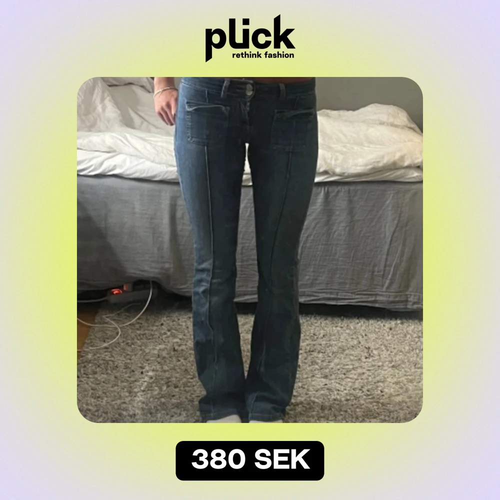 Low waist bootcut pocket jeans från Nelly. Innerbenslängden är 83 cm och midjemåttet är 32 cm rakt över men dem är väldigt stretchiga så dem passar mig som har 36-38, säljer pågrund av att jag inte får dem till användning, tyvärr🩷