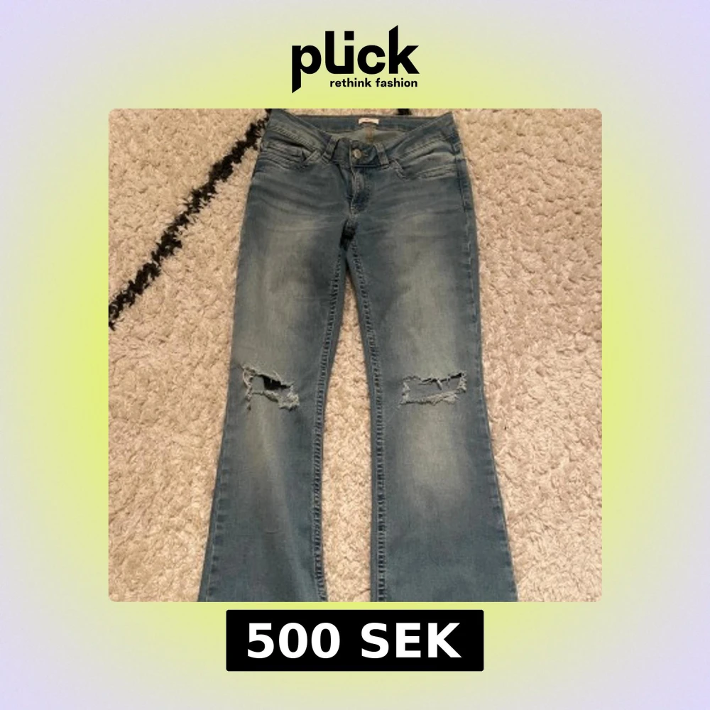 blĂ„a supersnygga bootcut jeans ifrĂ„n Nelly đ jeansen har hĂ„l pĂ„ knĂ€na och Ă€r sköna i passform đđŒanvĂ€nda max tre gĂ„nger och sĂ€ljer dĂ„ dem ej kommer till anvĂ€ndning đ€
