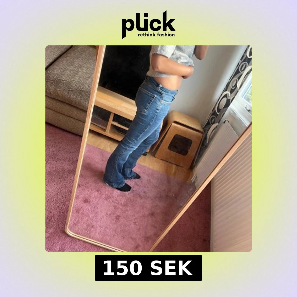 Säljer ett par klassiska blå Levis jeans med bootcut-modell. Jeansen har fem fickor, normal passform och är tillverkade i jeansmaterial. Snyggt slitna detaljer på bakfickan och en tidlös look som funkar till många stilar.