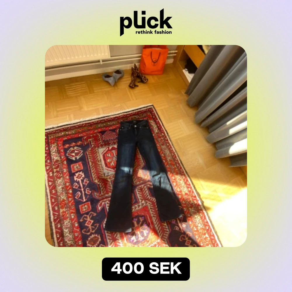 Säljer dessa såå snygga jeans som är lite små. Det är den perfekta mörkblå nyansen och de är i nyskick. De är midwaist/ lowrise💕💕