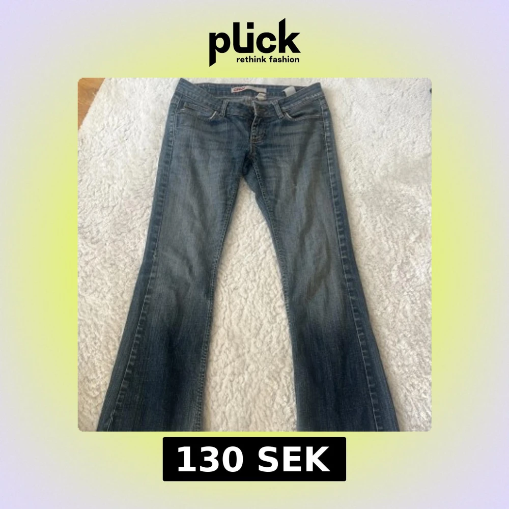Snygga blå jeans från ONLY med klassisk bootcut-modell. Säljer då de blivit lite små för mig tyvärr. De är lite sönder vid skrevet men skulle inte säga att de syns när de används. Pris går att diskuteras💕midjemått rätt över 40 cm