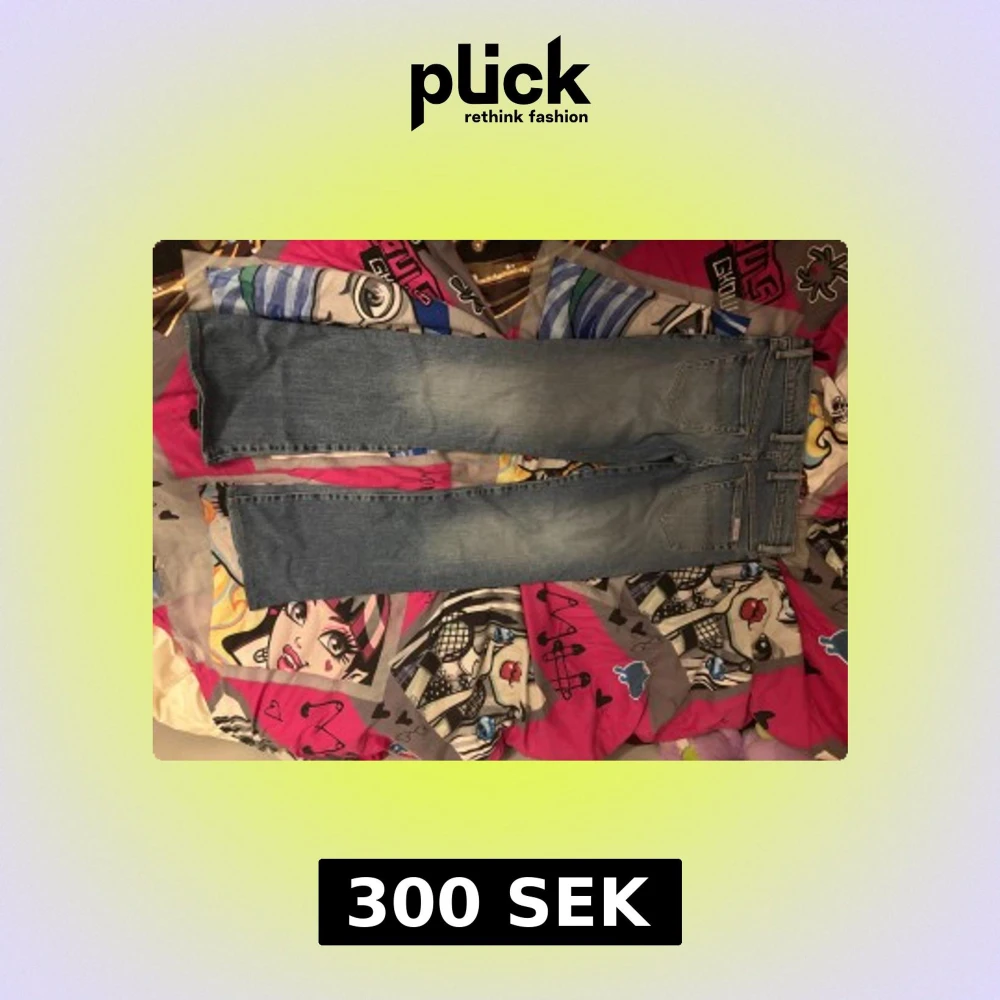 Ett par ljusblå bootcut jeans. Det står ingen storlek i dem, men de passar mig som är 160 isch. Skulle säg att de passar de som vanligtvis har storlek xs-m i jeans. De är lågmidjade och väldigt snygga på! Skriv om ni har frågor! Priset kan diskuteras och jag kan gärna mötas upp!