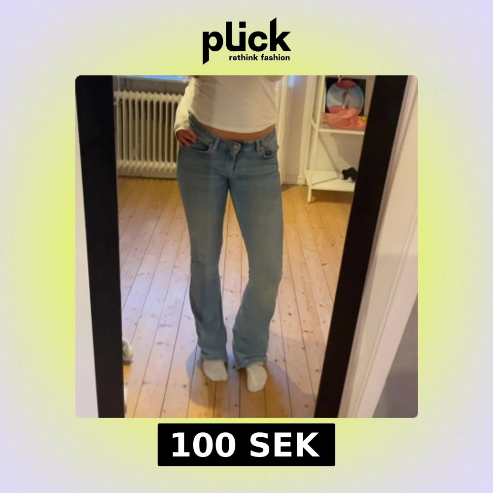 Supersnygga jeans från lager 157 i modellen ”low boot” tyvärr för små för mig så de används ej. Lite sönder längst ned då jag trampat på dom men ingenting som egentligen syns 💞