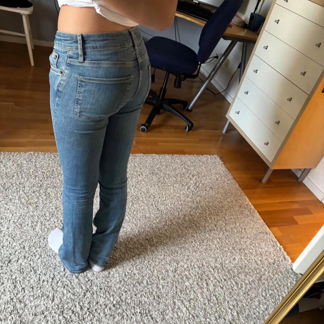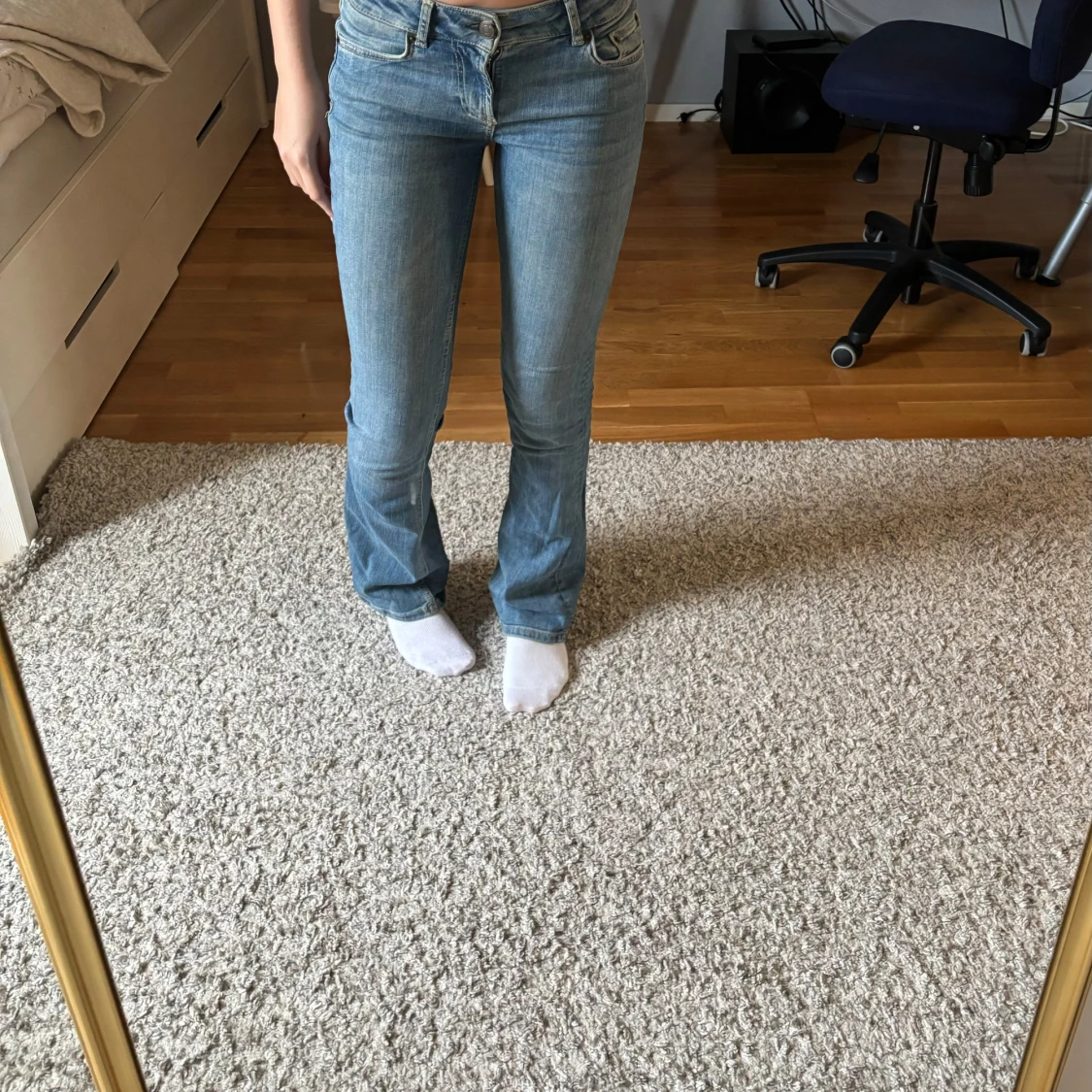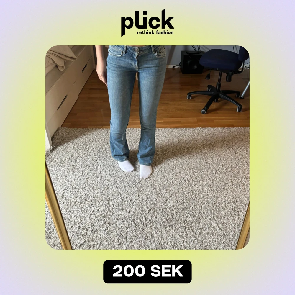 Säljer mina superfina lågmidjade bootcut jeans från Zara, i storlek 32💘