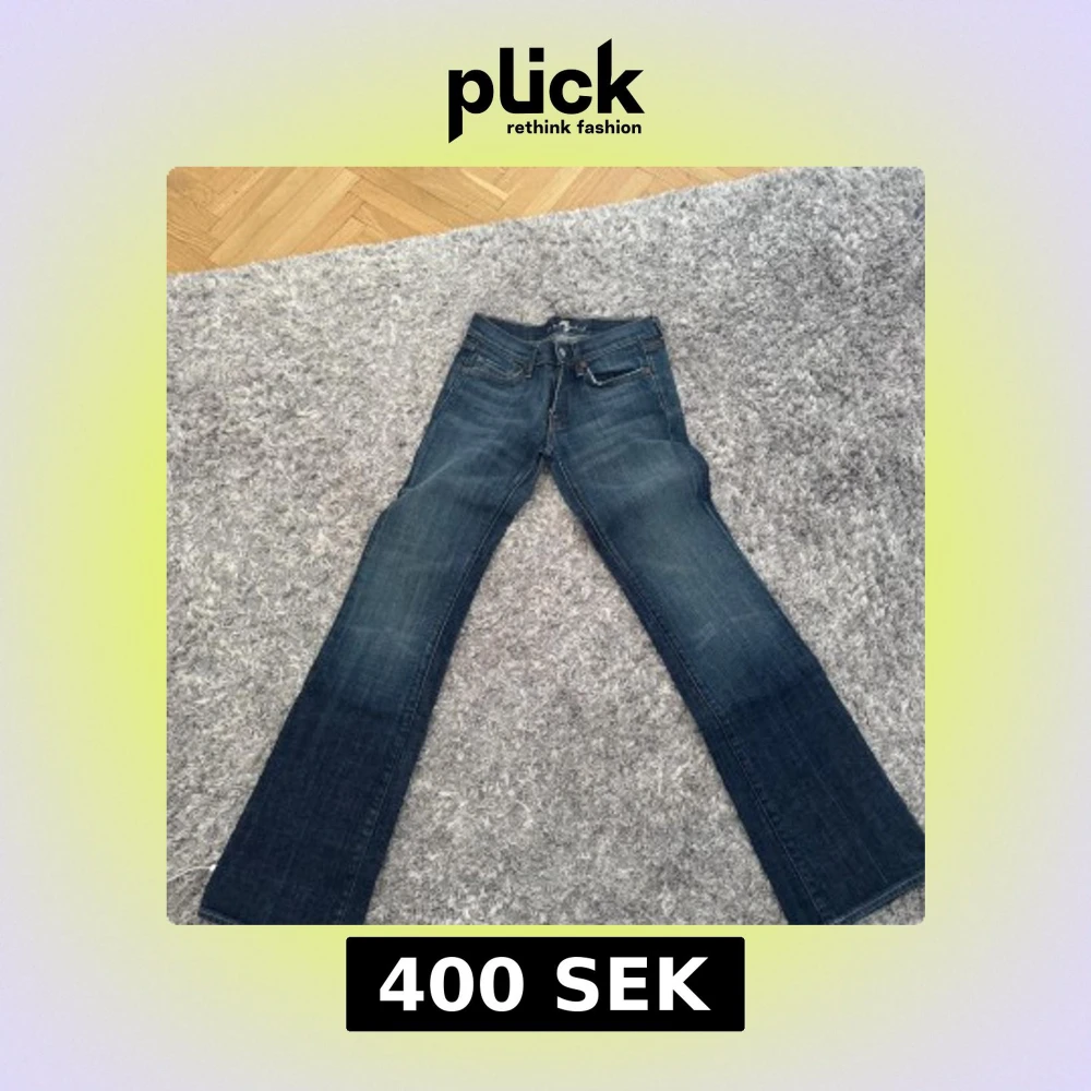 Mörkblå bootcut jeans från 7 For All Mankind med snygg tvätt och klassiska kontrastsömmar. Bakfickorna har en glittrig detalj i form av stenar. Jeansen är i klassisk denim och har normal passform med medelhög midja.