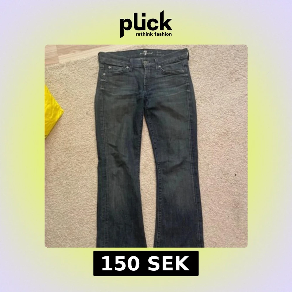 Mörkblå bootcut jeans från 7 For All Mankind i klassisk femficksmodell. Jeansen är tillverkade av 98% bomull och 2% spandex för en skön stretch. Snygg tvätt med lätt slitning och rå kant nedtill. Perfekt passform och cool look.