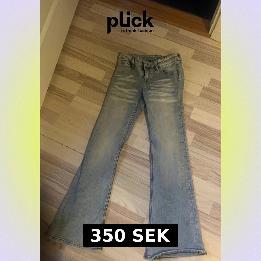 Snygga ljusblå bootcut jeans från Cheap Monday med slitningar framtill och klassisk femficksdesign. Jeansen har en stor vit patch med Cheap Monday-loggan bak och är tillverkade i mjukt denimtyg. Perfekt för dig som gillar retrovibbar och breda ben dem är heller aldrig andvända💕