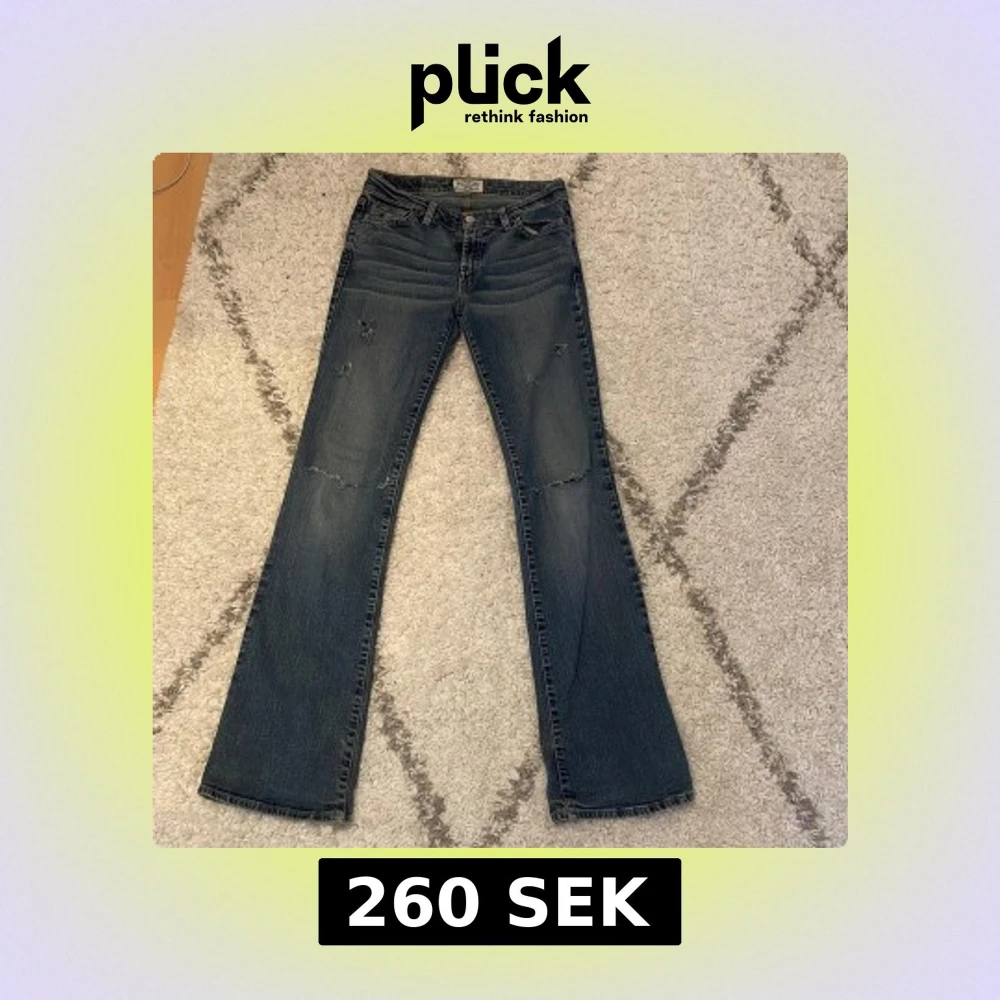 Snygga blå bootcut jeans från Crocker Originals, snygga slitningar på knäna och låren. Lite söndertrampat vid hälen, stl M är ung 165 och går över min häl. Kontakta vid frågor💞💞