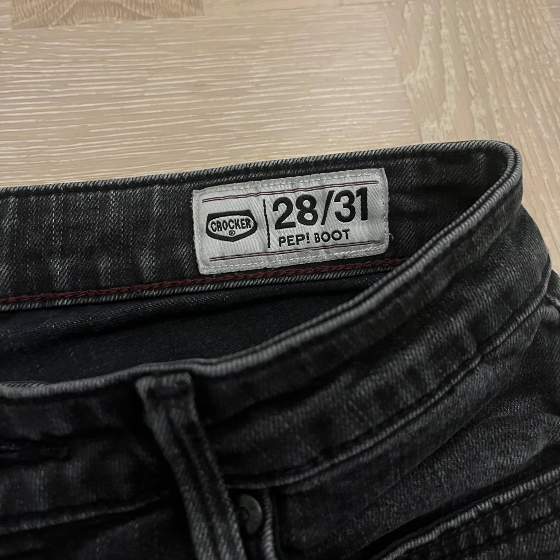 Snygga svarta low waist bootcut jeans från Croocker. De har en klassisk femficksdesign och stängs med dragkedja och knapp. Perfekta för en stilren look. Super sköna och snygga, skriv vid fler frågor!💕