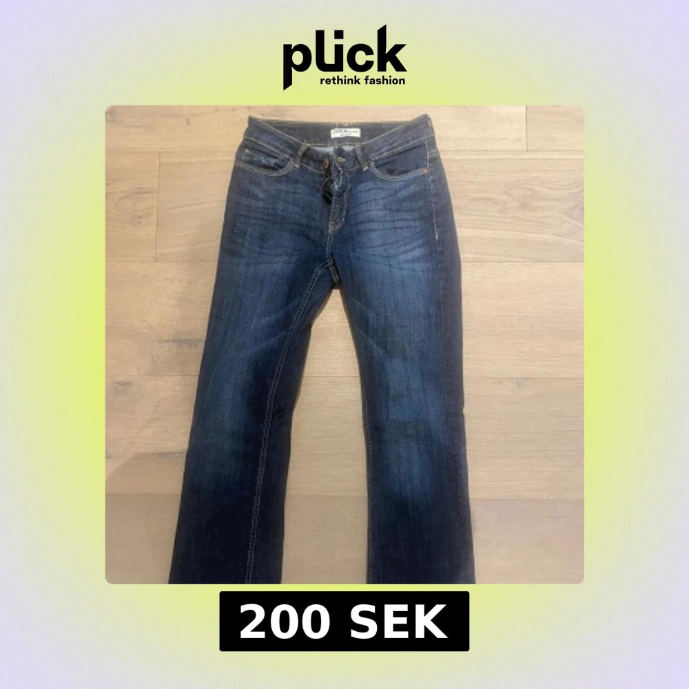 Mörkblå bootcut jeans från Lindex, Lowwaist/midwaist🥰Storlek 27/30, säljer då de inte kommer till användning!
