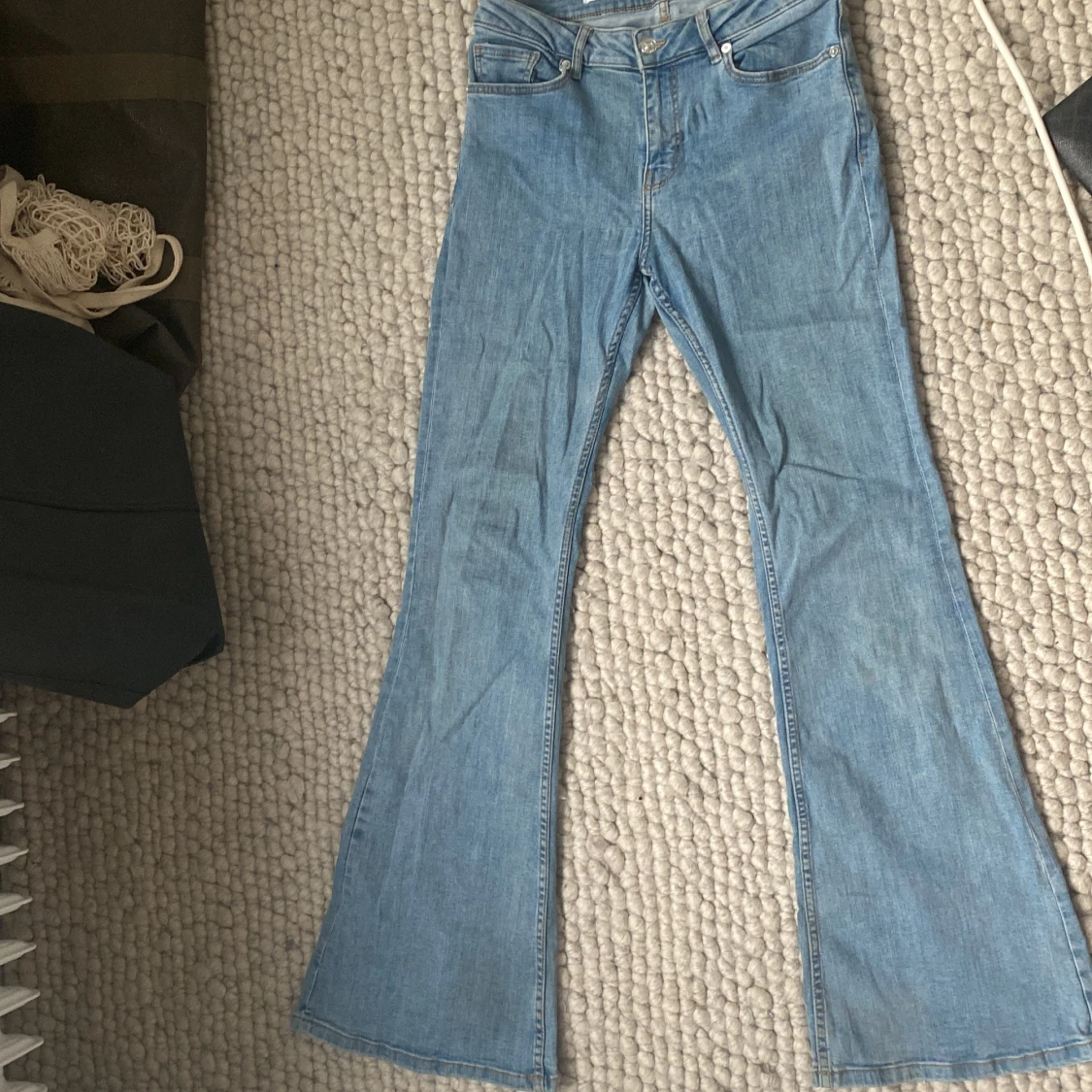 Snygga bootcut jeans med låg midja från mango i storlek 38. Bra skick, jag är 173cm. Lite mindre i storlek så dem passar storleken S/36.