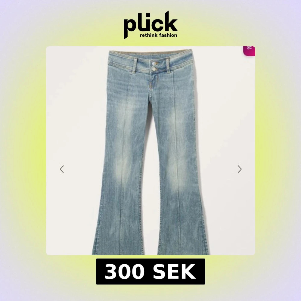 Snygga bootcut jeans från Monki i ljusblå denim med markerade sömmar framtill och dubbla silverknappar i midjan. Jeansen har låg midja och klassisk unik design. Perfekta för dig som gillar mode och vill ha en cool siluett. Har inte använt detta jeans mycket alls. Vanlig pris 500kr. Skriv för mer information ☺️