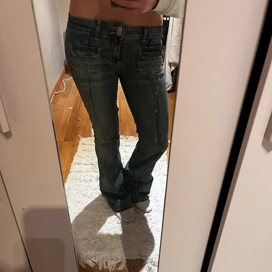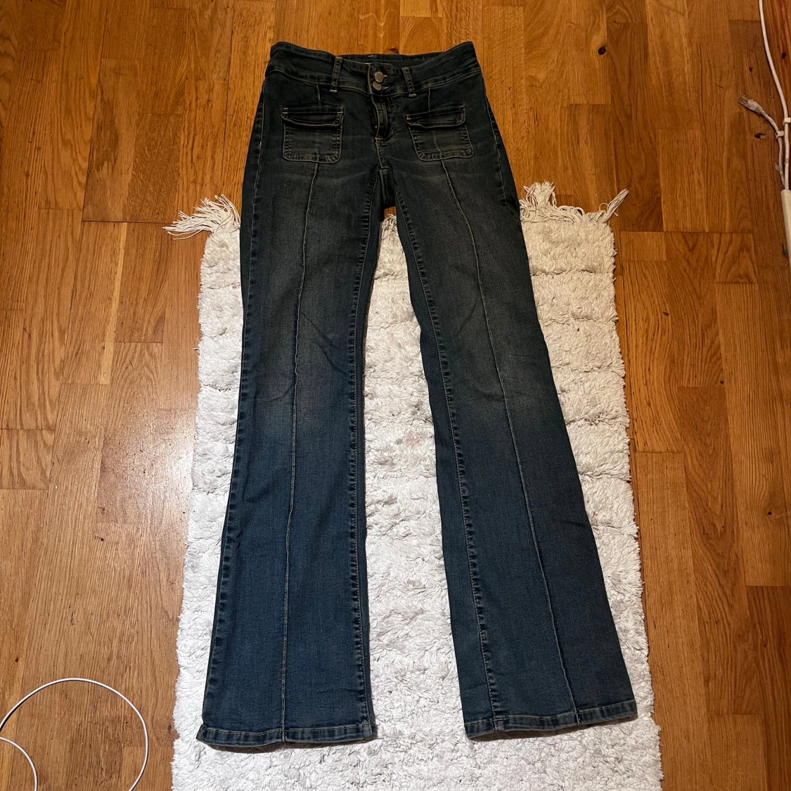 Mörkblå bootcut jeans från Nelly med låg midja. Snygga detaljer med framfickor och markerade sömmar längs benen. Klassisk femficksmodell i stretchigt jeanstyg som sitter skönt och ger en schysst siluett.