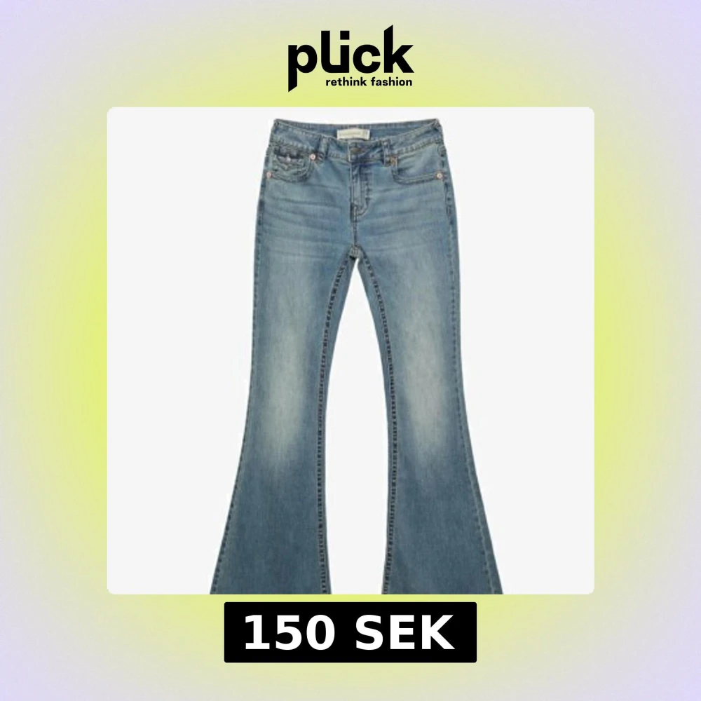 Snygga bootcut jeans från Stradivarius i ljusblå denim med klassiska fickor fram och bak. Jeansen har en normal passform och coola detaljer som knappar på fickorna. Perfekta för dig som gillar retrovibbar och vill sticka ut.